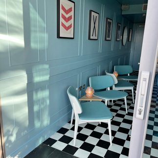 One of the most important elements of the room was the colour. I started off with purples - I was thinking royal Ascot and what colour is more royal than purple? But then I found my vintage Italian chairs on facebook marketplace reduced to £25 each. These are the kind of pieces you find when doing interiors that you really don't want to give up. I would have loved to keep just one of these for myself, but they were so perfect for the vibe I was trying to convey in my room, they had to go to Ascot. Of course, I didn't have time to reupholster four chairs (let alone the six dining chairs in the room) and the pale blue was already so stunning that I decided to go blue instead of purple. A sky blue would be perfect with the jockey silks and I felt it would probably feel fresher and lighter, after all Ascot is a daytime event. I found Sky Blue by Little Greene paint company and I have to tell you it is the most stunning shade of sky blue. I went with a gloss paint to reflect the light from the balcony as the spaces were quite dark - I would have loved high gloss but in the time we have with these spaces it never would have dried.